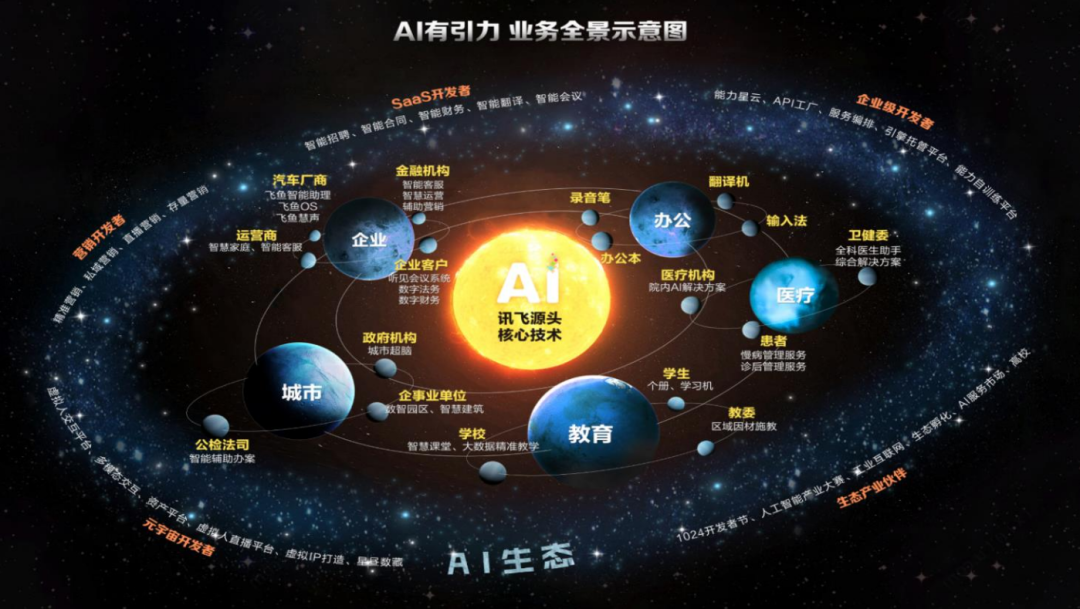 纵观其发展历程,科大讯飞在2014年正式启动“讯飞超脑计划”,研发基于类人神经网络的认知智能系统;2022年提出讯飞超脑2030计划,进一步深耕认知智能,并承办国家语言及语言国家重点实验室等多项工作,成为AI领域的“国家队”,12月15日启动“1+N”认知大模型专项攻关,其中“1”就是指通用认知智能大模型,“N”就是大模型在教育、办公、汽车、人机交互等各个领域的落地。