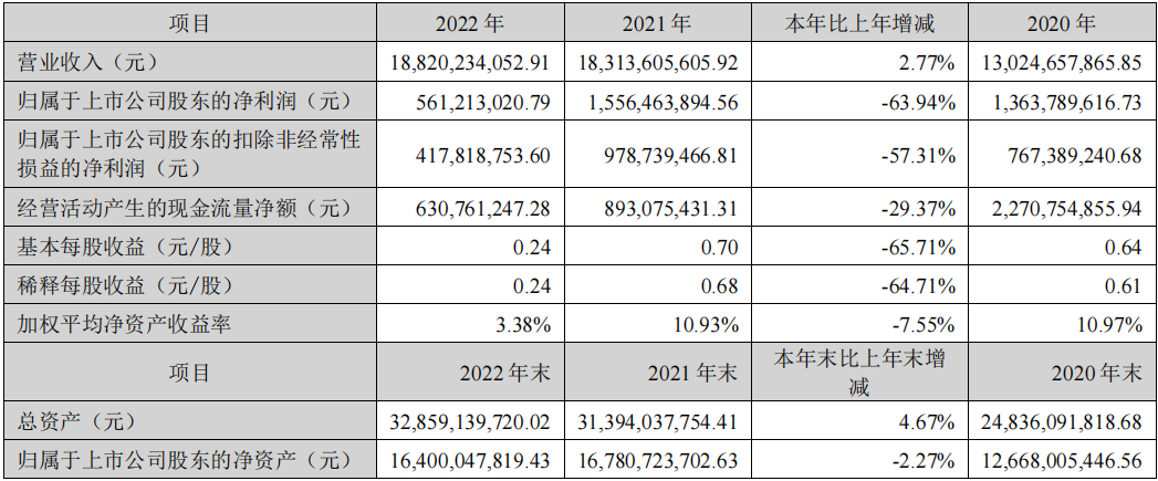数据显示,2022年科大讯飞公司实现营收188.20亿元,同比增加2.77%;净利润5.61亿元,同比下降63.94%;扣非后净利润4.18亿元,同比下降57.31%。