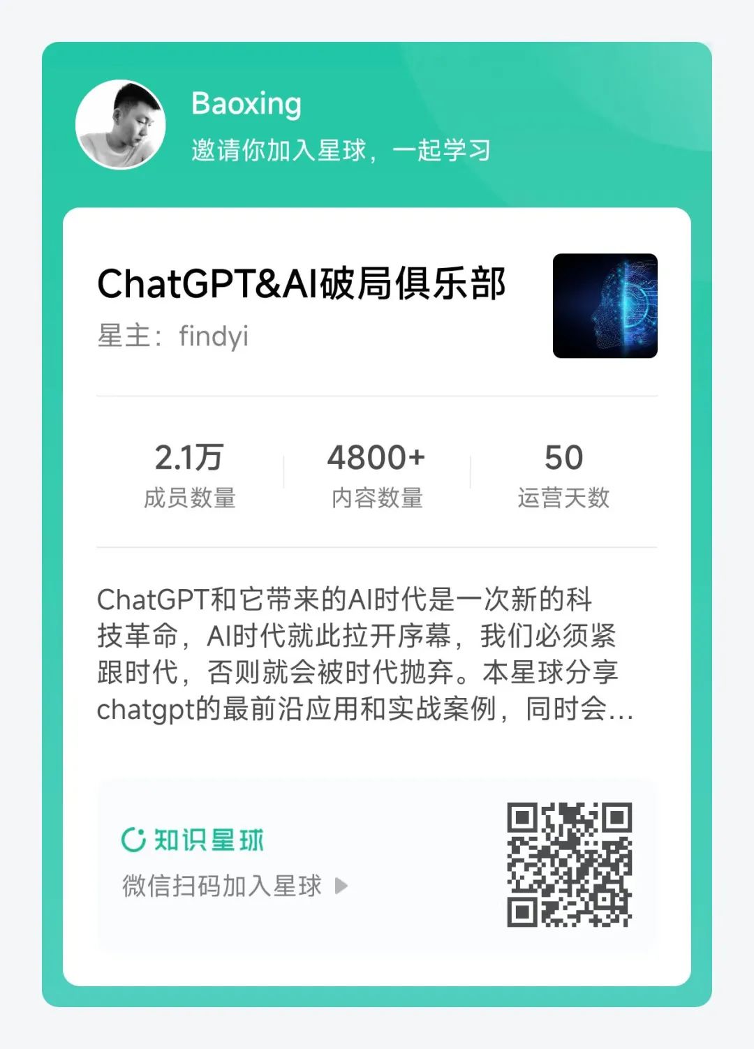 🚩【ChatGPT&AI破局俱乐部】目前是星球头部最大的AI社区,仅44天就突破了20000会员数,打破星球最快增速记录