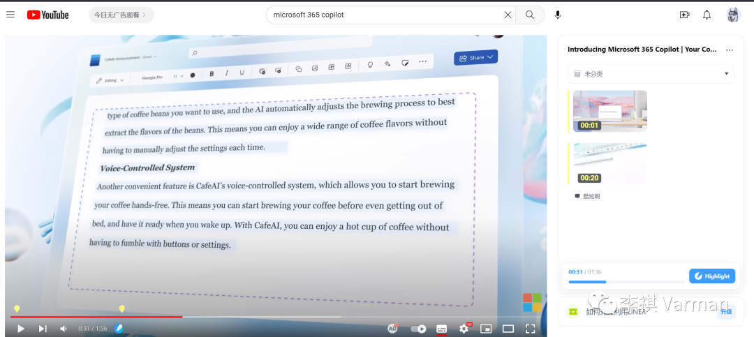 在看 YouTube 视频时也可以在时间轴上进行手动标注,写下笔记。